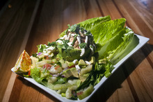 Rounding out the small plate selections was a cold, creamy avocado soup of the day ($6) that could have been punched up with some well-chosen spices. Chilled hummus ($7) was dry and bland but the accompanying vegetables were fresh and crunchy.