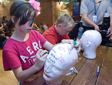 The Castle Dale students were invited to participate in an experiment that will be featured in the new exhibit by signing their names in the exact same location on two identical styrofoam mannequin heads. One head will be taken to the ocean and submerged to a depth of 1,500 meters, where water pressure will shrink it to a fraction of its original size, while the other will be left unchanged.