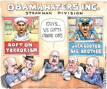(Answer to who is in the cartoon: Rush Limbaugh, Matt Drudge, Roger Ailes, Glenn Beck, Karl Rove.)
