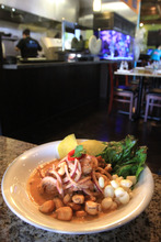 The arroz con marisco ($15), more familiarly known as paella, was filled with perfectly prepared squid, scallops, octopus and shrimp, and topped with mussels that surrounded fragrant saffron rice that held flavor and moisture.