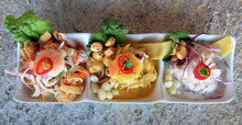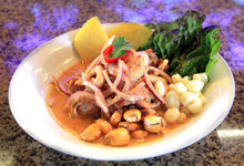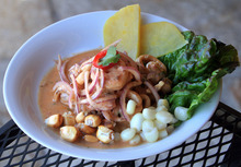 Ceviche is a raw fish dish with fresh seafood cut into bite-size pieces and then marinated in tiger's milk (leche de tigre), which consists of lime, lemon, salt and a variety of seasonings. The citrus mix actually "cooks" the fish, changing the texture but preserving the raw, fresh taste familiar to sashimi lovers.