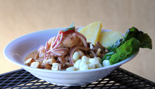 Del Mar serves nearly a dozen ceviche flavors, but each begins with a base of squid, scallops, octopus, shrimp, halibut, grouper and/or whatever is freshest bathed in tiger's milk and garnished with thinly sliced onions.