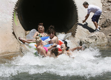 Hamill took her dog to the nature park next to Tanner Park last year and had seen the kids piling out of the culvert. Summer ended before she got a chance to do it herself. So with the mercury stuck above 100 Saturday, she called her friends.