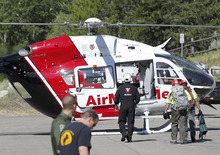 Not only is the slope leading to the crash site heavily forested, but it also is strewn with large granite outcroppings and has become unstable due to recent rains, adding to rescuers' difficulties. The impact of the crash peeled open the front of the helicopter like a tin can, authorities said.