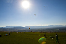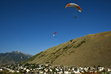 Next to the interstate, trucks the size of small houses look like industrious ants crawling around Geneva Rock's sand and gravel pit below. At the neighboring flight park, pilots swarm the sky in paragliders and hang-gliders that fill the air with the festive colors of a child's birthday-party balloons.