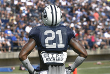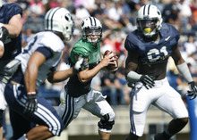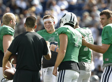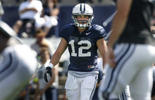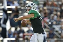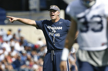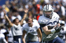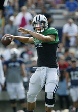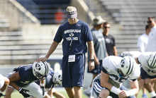 The unquestioned starting quarterback, Taysom Hill, performed well. He got the first of three practice-ending series and led the offense on a 16-play, 80-yard drive for a touchdown. However, there's no way the Cougars got a play off every 12 seconds, their stated desire.