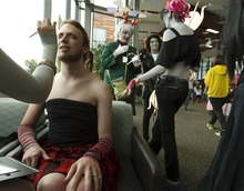 Camille Case, 18, from Layton, assembled her costume, of "Black Butler" character Ronald Knox, from stuff in her closet. In a "Cosplay 101" workshop she moderated with Johnson, though, Case admitted she has dozens of cosplay outfits and planned to change into a different one, the character Latula from the web comic "Homestuck," later in the day.