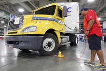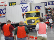 Oregon's Jeff Turner, safety manager for Con-way Freight, said the skills tests are designed to simulate challenges drivers must face every day such as approaching a scale, backing up into a loading area or parking a big rig in a tight spot. The competition is so demanding that touching a barrier or cone means zero points. In some tests, drivers have 18 inches to work with.