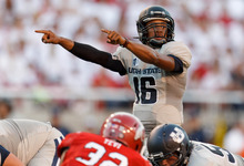 Utah State quarterback Chuckie Keeton stood in front of the locker room, the red stain of blood on his teeth.