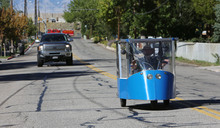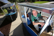 Some early versions allowed the driver to pedal to supplement solar power. "It was good exercise, but I found it didn't generate all that much power," Schoenberg says. He started out using technology that was more similar to bicycles, but eventually moved to technology that is more like electric scooters.