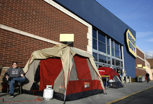Thanksgiving-night shopping is fast becoming a tradition for the women of Tyler James' family, and that's fine by him.
