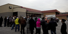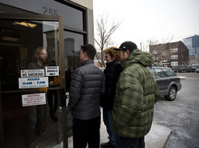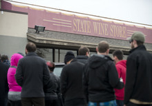 Some in line Thursday wouldn't give their names because they were skipping work. Three were let in the store at a time, until finally a store worker emerged to say they were sold out, drawing groans and curses. A woman who was first in line at the time had some choice words for "line jumpers" before heading inside for a bottle of consolatory Jameson.