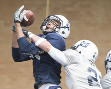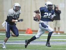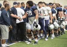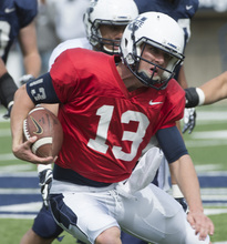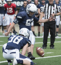 The final scrimmage between the offensive and defensive units went down to the wire. In the end, the "Blue team" made up of the offense won under the game's specialized scoring system, 78-77, with a 39-yard Nick Diaz field goal that led to very real celebration on the sideline and in the stands. It's just a reflection of what Utah State hopes to be this fall, when the real games start. But coach Matt Wells was pleased by signs of progress, as well as the competitiveness with August months away.