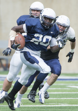 Among the most surprising standouts were the top two running backs, Rashad Hall and Kennedy Williams, who ran for a combined 219 yards on 34 carries behind offensive linemen trying to replace four productive starters.