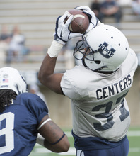 Not eager to stiffarm a quarterback in a spring scrimmage, Centers tried to cut back. He was tackled two yards short of the goal line, and the sophomore safety was left laughing at himself at what might have been.