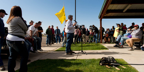 The sheriff was referring to BLM's recent stand-off with armed supporters of Nevada rancher Cliven Bundy who has long refused to pay grazing fees. Also addressing the rally was Bundy's son Ryan, who counseled there is no such thing as federal land.