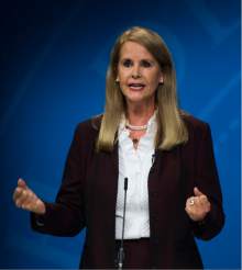 "I get things done," she says, echoing her campaign slogan. "I'm not a career politician. But I know how to run a business" and accomplish goals.