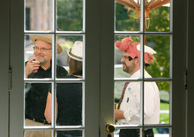 Larabee was speaking at a brunch for SAGE (Services and Advocacy for Gay, Lesbian, Bisexual and Transgender Elders). The pride center launched a Utah chapter of the national group a year ago. The garden party, held at the Memorial House in Salt Lake City, had a "Do you like my hat?" theme. Attendees, wearing Mickey Mouse ears and flowery caps, mingled over mimosas and quiche.