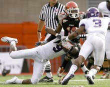 TCU bumped its lead to 40-0 on Dalton's 16-yard touchdown pass to Jimmy Young with 5:33 left in the third quarter and a 24-yard field goal by Evans two plays into the fourth quarter.