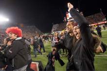 Wilson carried atop fans' shoulders, as he was after beating No. 5 Stanford last year finished 17-of-31 for 193 yards, and junior running back Devontae Booker rushed 26 times for 102 yards and one touchdown. The win improved the 6-1 Utes to 3-1 in conference and dealt a blow to the previously 4-1 Trojans.