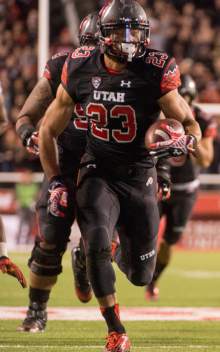 Utah Utes running back Devontae Booker (23) runs for a third-quarter touchdown in Pac-12 acti
