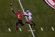 Utah WR Dres Anderson can' reach this pass from QB Travis Wilson on Utah's first posse