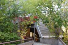 Once inside, Nunemaker Place reminds you of a 1970s ski lodge. It's not surprising, then, to find out that the architects were the same ones who built several buildings at Snowbird ski resort. What appeared to be a tower rising out of its pointed roof is actually a "light scoop," designed to spread sunlight into the building, illuminating its angled cedar walls and stonework façades.
