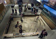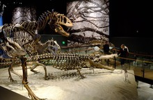 There is nothing lifeless in the way these bones are displayed. Even by contemporary museum standards, the gallery's largest exhibit is striking for its energy, depicting a life and death struggle between a 90-foot barosaurus and a pack of juvenile allosaurs. It's a perfect example of the museum's goal to be scientifically accurate while creating a sense of drama.
