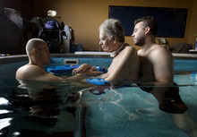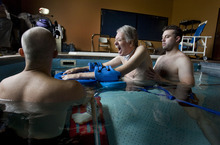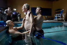 The other days he goes to Neuroworx, a therapeutic facility in South Jordan, for two hours or more of stretching. He does, he says, "endless kinds of exercises to strengthen legs, glutes, hamstrings, feet, lower back, arms and trunk." One day a week, he works out in Neuroworx's pool and another day he is put into a "standing frame" for 45 minutes to put weight on his legs and improve his bone density.