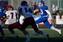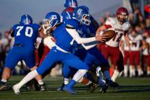 "This is Bingham football," said Peck, whose top-ranked team scored three touchdowns in less than three minutes in the fourth quarter after only leading 9-6 on three Chayden Johnston field goals. "I think we have lost one game here in seven years. We have a big home-field advantage. Part of that is we lost a game to Alta in 2008 in the fourth quarter. Every workout we do starting in the offseason, we end workouts with a four call. That means finish with our best effort. In the weight room, we go to failure. It happens in January on a daily basis. We will not lose this game in the fourth quarter. It is the mentality, and the kids bought into it. It has meant something for months and months. We yell 'four' and say it loud. You know what we have put in."