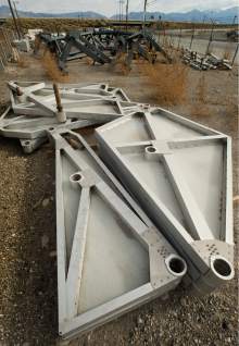 The once awe-inspiring centerpiece of the 2002 Winter Games Medals Plaza, the Hoberman Arch, now sits in several dozen pieces at Salt Lake City's impound lot, like so much junk.