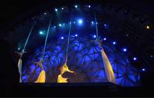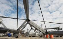When assembled, the phenomenal 31,000-pound aluminum web is 36 feet high and 72 feet wide. It opens and closes like the iris of an eye.