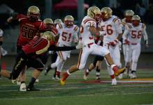 Max Barnett scored touchdowns on runs of 21, 1, 30 and two yards. Auer added scoring runs of 9, 4 and 8 yards. And Michael Kearns ran for 62- and 12-yard touchdowns.