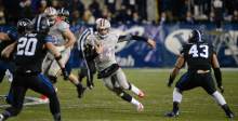 Defensively, Kaufusi led the way with nine tackles and two sacks, while Las Vegas native Kai Nacua had an interception. The Cougars gave up a 68-yard touchdown run to UNLV's Shaquille Murray-Lawrence and a 42-yard touchdown catch to Devonte Boyd, but otherwise stiffened when it had to and limited the Rebels to 403 yards. Blake Decker, who once tried out to play for BYU, completed just 10 of 25 passes for 90 yards before taking a hard hit and leaving the game for the second straight game in the third quarter.