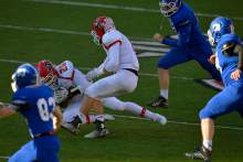American Fork's Ben Cummings (20) recovers a fumble during the 5A state championship game