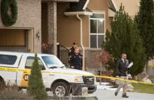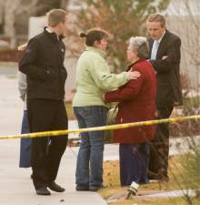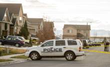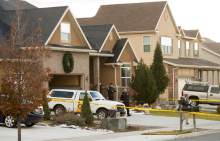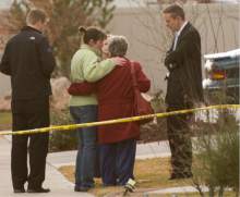 Neighbors and loved ones gather as the police investigate a fatal accidental shooting in the 1900 block of Cooper Street in Kaysville, Sunday, November 23, 2014