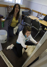 Volunteers Anadine Burrell, left, and Allie Schulte volunteer their time to clean do a deep clean at the substance abuse treatment center, First Step House in Salt Lake City on Saturday, January 14, 2012. University of Utah's Lowell Bennion Community Service Center and Black Student Union host the annual Martin Luther King Jr. Day of Service. Volunteers split up to do four different service projects around the city, including at the First Step House on Grant Street.