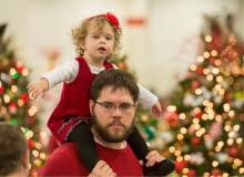 Arianna Carlton, 2, Ogden, rides on the shoulders of her dad Chris, at the Festival of Trees