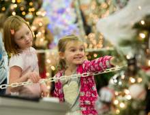 Sophie Olsen, 7 (let) and Charlotte Irion, 4, Soiuth Jordan, check out the exhibits at the Festival of Trees at the South Towne Expo Center, Thursday, December 4, 2014. The Festival continues from 10 am to 10 pm until December 6.