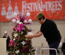 A volunteer with the 2012 Festival of Trees makes last minute touches to displays in the annual