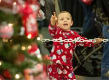 Wyatt Milar, 4, South Jordan, points out a tree to his family, at the Festival of Trees at th