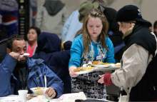 Stahlie Singleton, 12 at the time of this photo last Christmas, serves dinners to the needy with her family at the Salt Lake City Rescue Mission.
