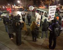 Craig Bowden (right) talks to a dozen or so people against police violence, in front of the Federal Building in Ogden, Saturday, December 20, 2014