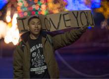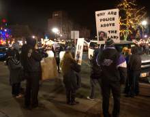 David Alanda walks on the sidewalk along Washington Blvd, with protestors against police violence, Saturday, December 20, 2014