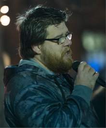 Craig Bowden talks to a small group of people against police violence, in front of the Federal Building in Ogden, Saturday, December 20, 2014