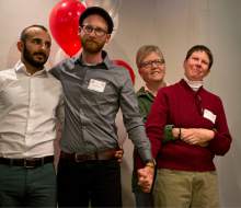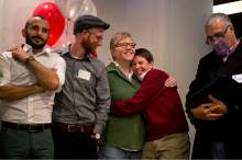 Saturday's attendees included Moudi Sbeity and his partner Derek Kitchen two of the six plaintiffs in the lawsuit that lead to same-sex marriage in Utah. With his arms wrapped around Sbeity, Kitchen said the two have set a marriage date of May 24 at the Gallivan Center in downtown Salt Lake City.