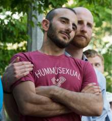 Partridge • I would encourage them to listen to the stories. I just can't believe there are many people anymore who don't know somebody [who is gay] in their family, in their workplace, in their neighborhood. If they really look around, they can't see somebody whose life hasn't been touched. They'll see, Derek and Moudi are small-business owners and make really delicious hummus. Laurie and I are teachers. Laurie helps take care of her mother, and I'm the youngest of five children. We're just regular people. And I want to hear their stories.
