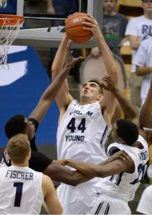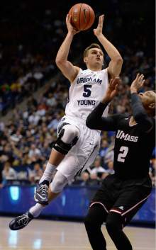At the end of regulation, BYU owned a 62-61 lead when Chase Fischer drove into the lane and had his shot blocked. UMass regained possession with 14.1 seconds left.