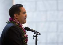 Reyes' father, Buddy Reyes, who Reyes said toured with Bob Hope and had celebrity status in the Philippines before fleeing the dictatorship of Ferdinand Marcos, played Filipino and Hawaiian songs. The inaugural ceremony also featured a Spanish guitarist, Buddhist and Pacific Islander drummers, and a children's choir.