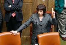 Speaker of the House Becky Lockhart, R, Provo, during a meeting with the press in her office next to the Utah House of Reprsentatives, Thursday February 16, 2012.